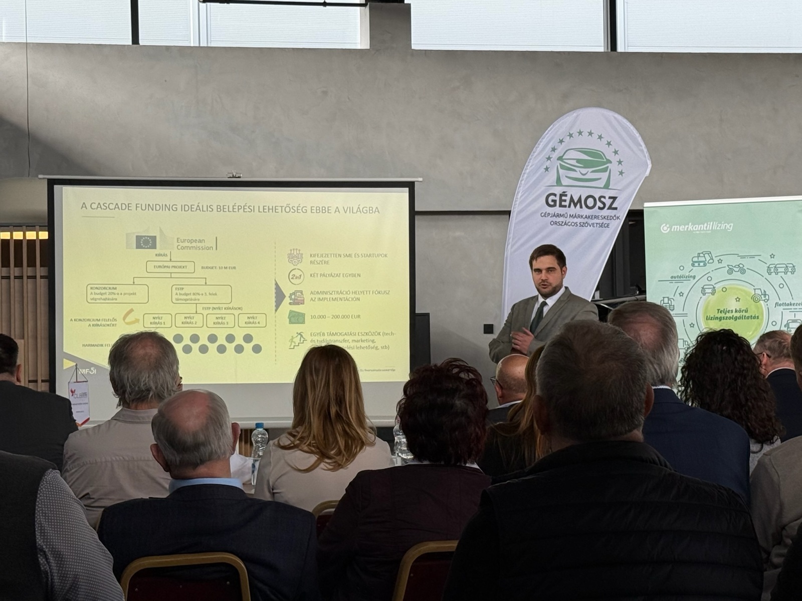 A Merkantil Bank előadói, Szentpéteri Balázs, Végh András és Kiss Norbert Lízingpiac 2026 címmel tartottak előadást.