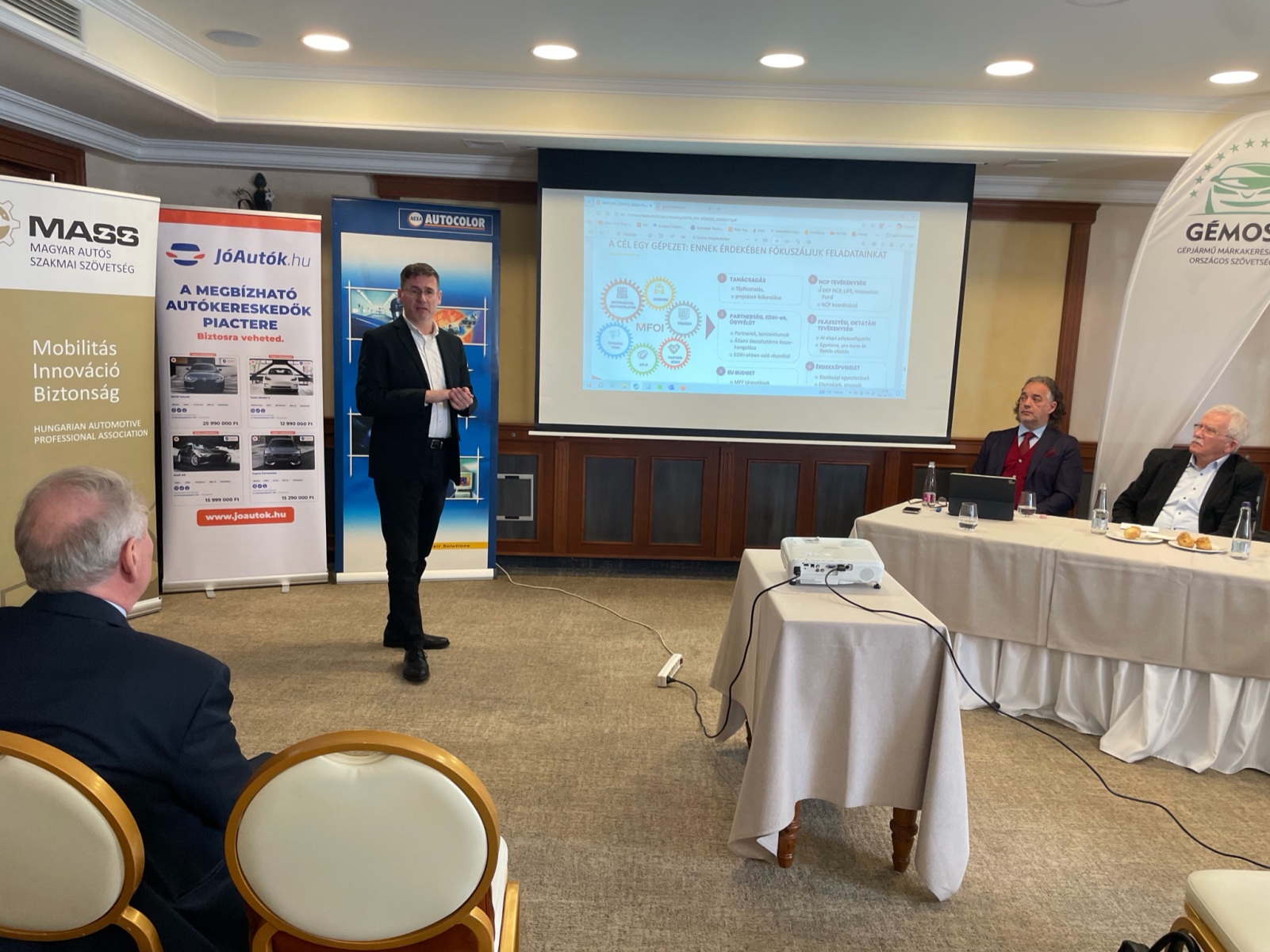 Az autós szakmát érintő kérdéseket ismertettek Cseri József és Szilasi János a GÉMOSZ alelnökei. Cseri József a hazai új autó piac helyzetét elemezte, Szilasi János a jövő működési lehetőségeit tárta elénk.