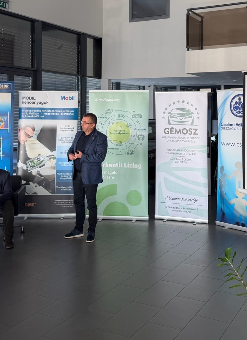 2026-ban az európai és ezen belül a magyar új autó piac, további jelentős változásokon esik át. Mint azt Gablini Gábor minden helyszínen hangsúlyozta ez a helyzet tovább erősíti a GÉMOSZ elkötelezettségét, hogy a lehető legtöbb, legszélesebb körű, megbízható információt gyűjtse össze és ossza meg kollégáival. Ennek érdekében tagja az Európai Szövetségnek a CECRA-nak, ahol a GÉMOSZ igazgatósági tagként vesz részt a munkában. Elmondja, hogy a GÉMOSZ ügyvédje Dr. Szabó Levente a CECRA jogi bizottságának tagja, és már a gépjárművek javíthatóságát segítő, magyar javaslatot is sikerült az Európai Bizottsággal jogszabályba foglaltatni.