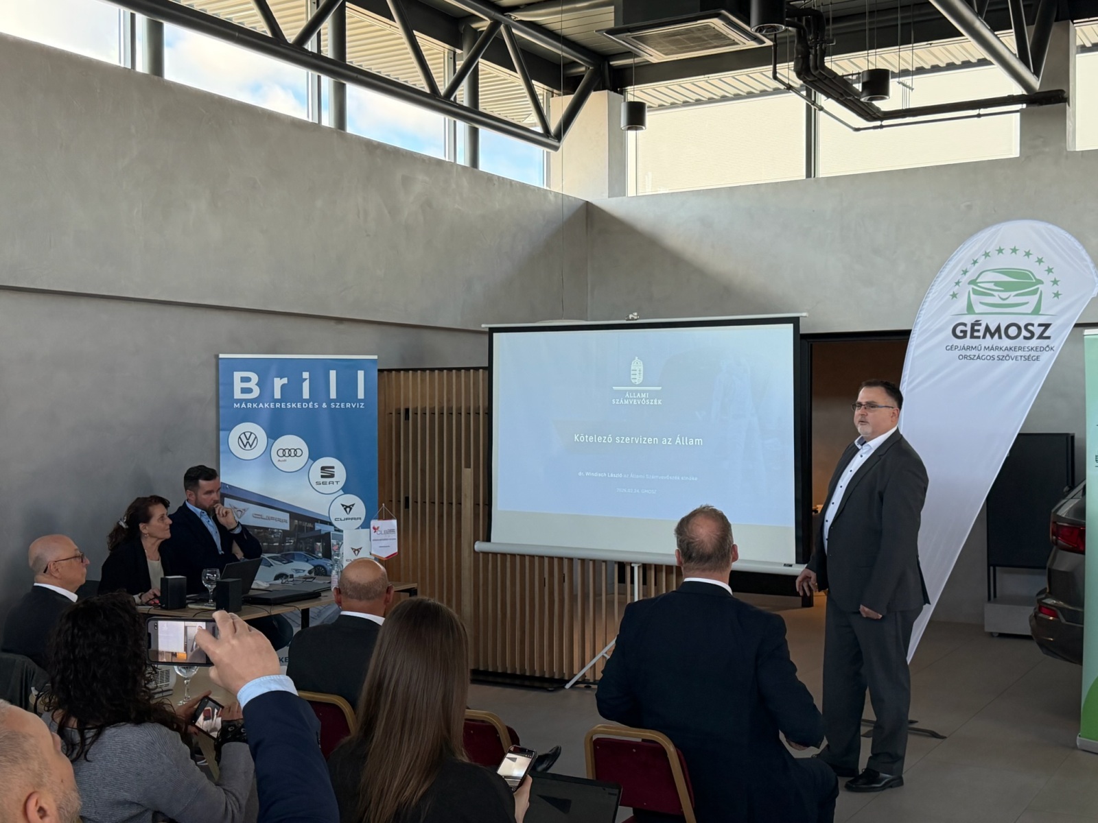 Az autós szakmát érintő kérdéseket ismertettek Cseri József és Szilasi János a GÉMOSZ alelnökei. Cseri József a hazai új autó piac helyzetét elemezte, Szilasi János a jövő működési lehetőségeit tárta elénk.