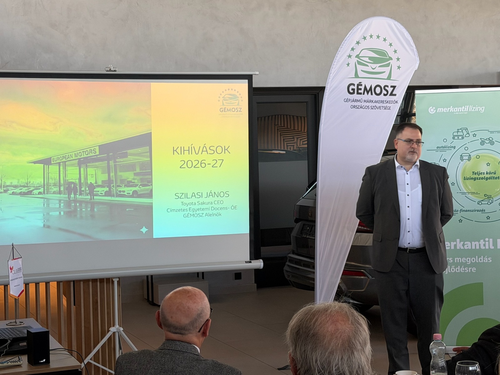 2026-ban az európai és ezen belül a magyar új autó piac, további jelentős változásokon esik át. Mint azt Gablini Gábor minden helyszínen hangsúlyozta ez a helyzet tovább erősíti a GÉMOSZ elkötelezettségét, hogy a lehető legtöbb, legszélesebb körű, megbízható információt gyűjtse össze és ossza meg kollégáival. Ennek érdekében tagja az Európai Szövetségnek a CECRA-nak, ahol a GÉMOSZ igazgatósági tagként vesz részt a munkában. Elmondja, hogy a GÉMOSZ ügyvédje Dr. Szabó Levente a CECRA jogi bizottságának tagja, és már a gépjárművek javíthatóságát segítő, magyar javaslatot is sikerült az Európai Bizottsággal jogszabályba foglaltatni.
