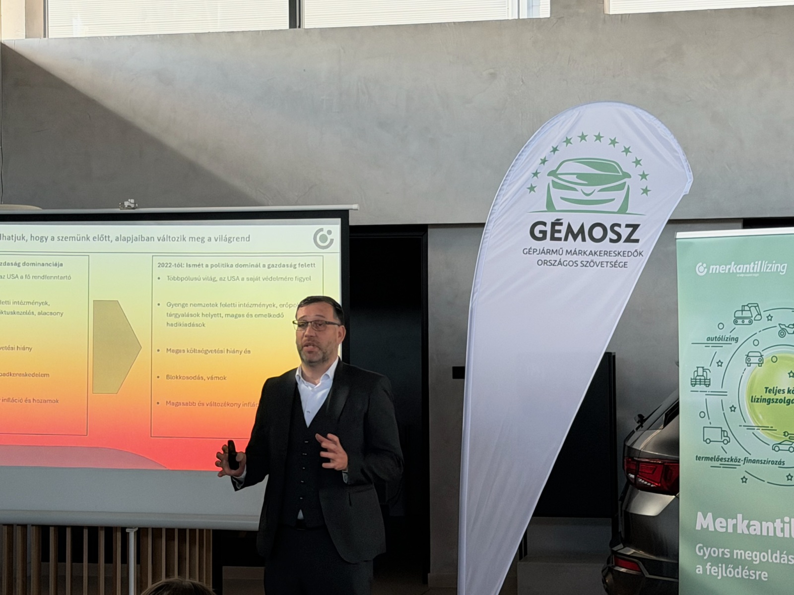 A Merkantil Bank előadói, Szentpéteri Balázs, Végh András és Kiss Norbert Lízingpiac 2026 címmel tartottak előadást.
